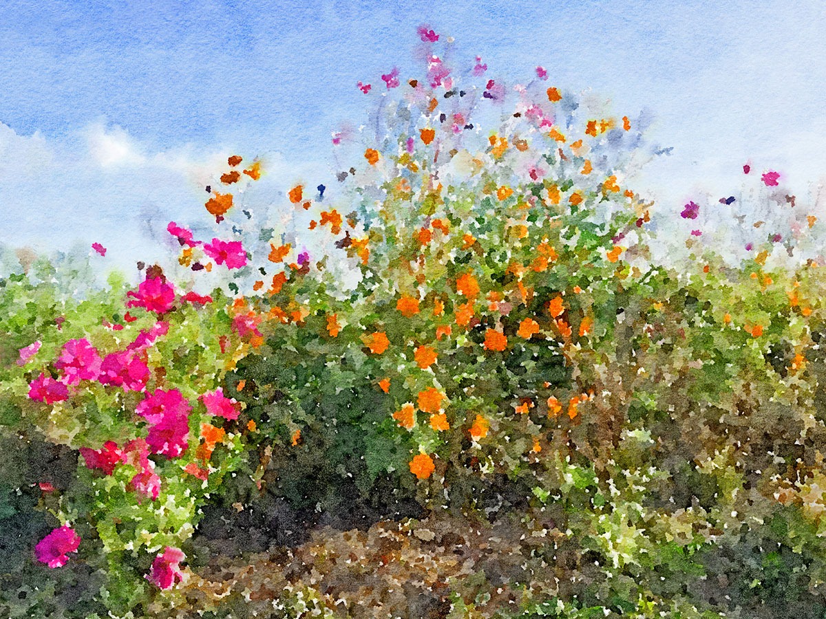 An jedem Tag meiner Wanderung habe ich von Schönem und Besonderem Aquarell-ähnliche Bilder erstellt. Diese Bilder kann man sich hier anschauen.
